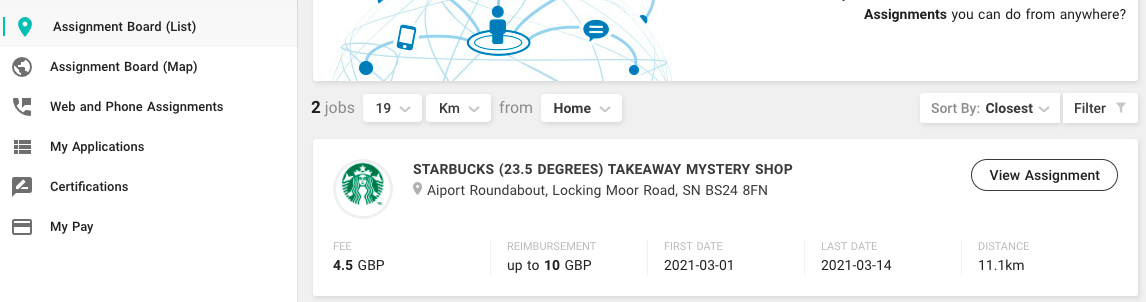 The first step is to find an assignment that you would like to do. So head to the 'Assignment Board' in the menu on the left-hand side of the screen. Click on 'View Assginment', like below.