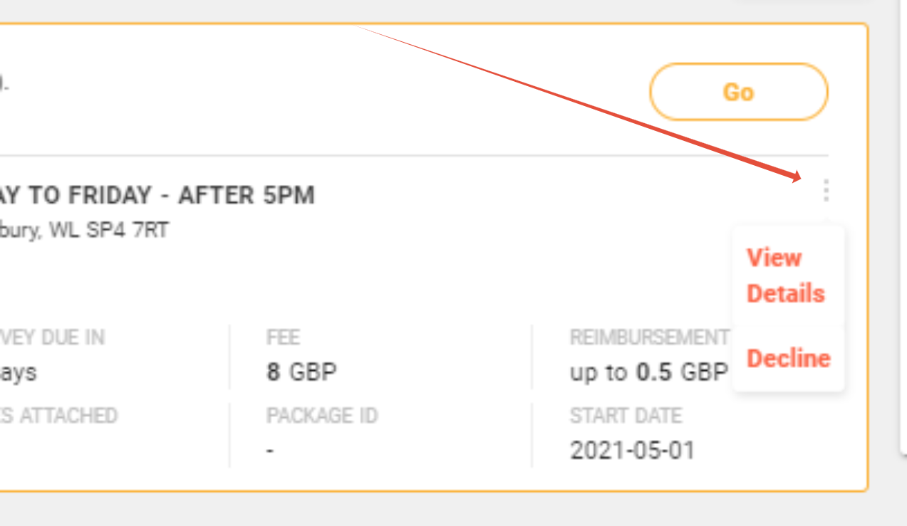 You will then see a list of all of the mystery shops that you are due to do, so find the one that you are no longer able to complete. Next, click the three 'dots' on the right-hand side. Then click 'Decline'.