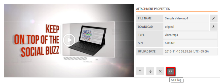 In order to add a Video Tag to a Survey Question you need to click on the tag button of your video: