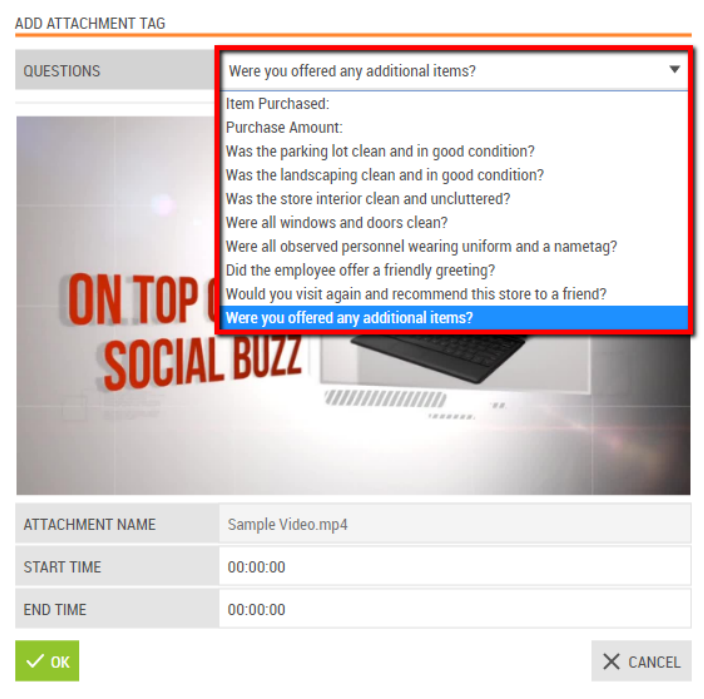 From the Questions drop-down menu, select the survey question to associate with the video: